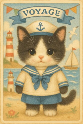 こんにちはツッキーです。ずいぶん間が空いちゃいましたが、DALL君日記#2です。※念のため言っておきますが、ツッキーの妄想です※ 今回の問題の画像 ①「ぬいぐるみのように可愛いハチワレの子猫が、青と白のセーラー服とセーラー帽を着て立っている。」 こ…